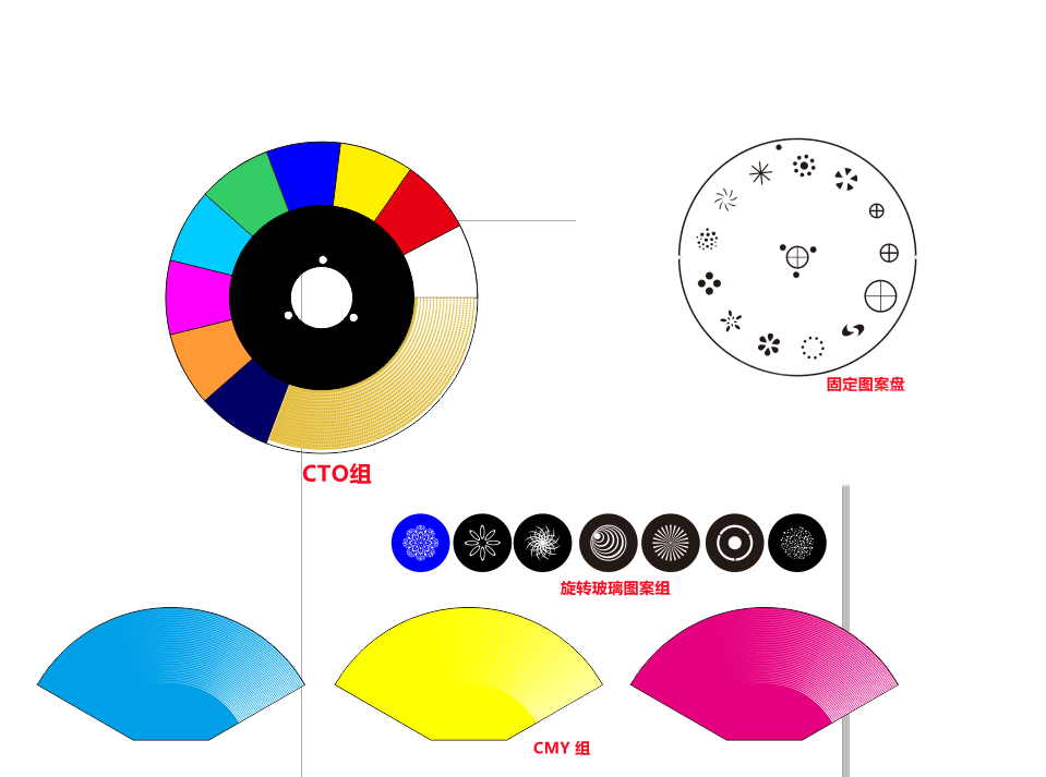 –Rotating Gobo: 7 glass gobo, each of which can be independently reversed