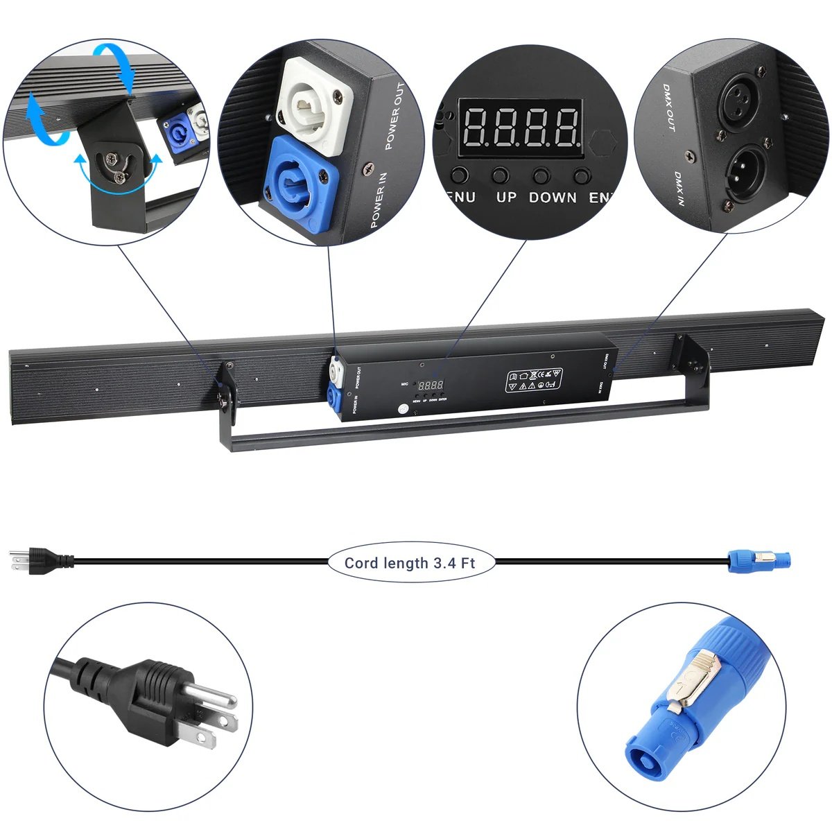 Elevate your event lighting with our cutting-edge Pixel Control DJ Light Bar. This linear powerhouse combines precision and brilliance with its dynamic LED array: 12 warm white LEDs for striking beam effects, 156 high-output 5730 white LEDs, and 96 vibrant 5050 RGB tri-color LEDs for mesmerizing pixel mapping.